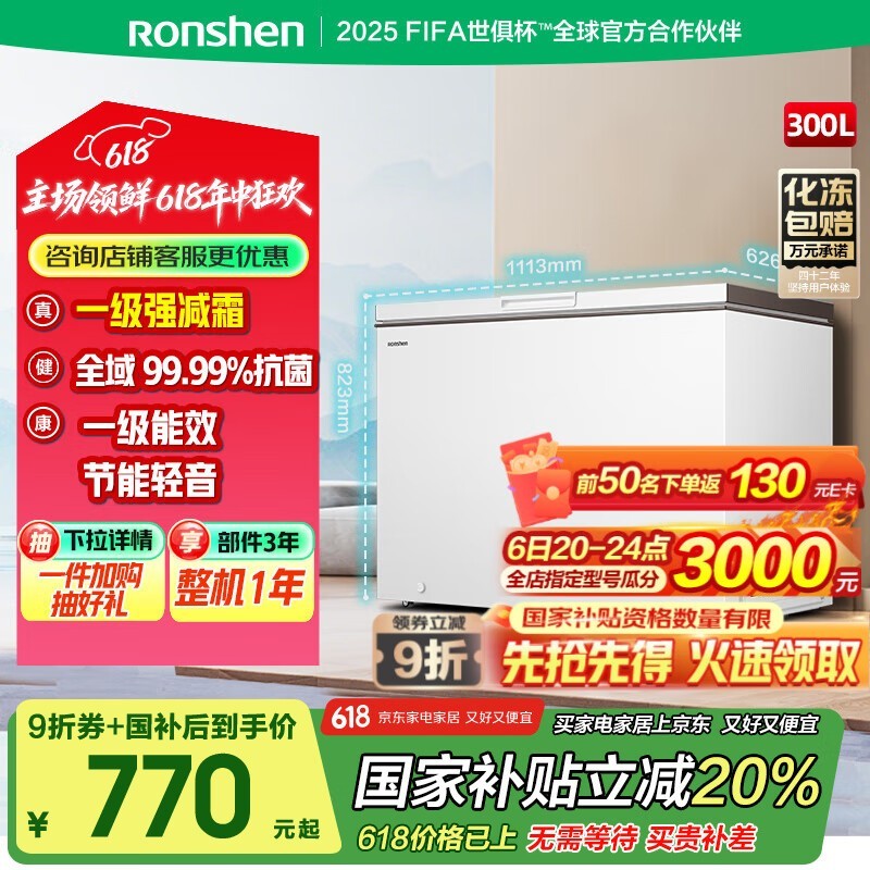 容声300升冷藏冷冻可转换冰柜大促,仅需438元
