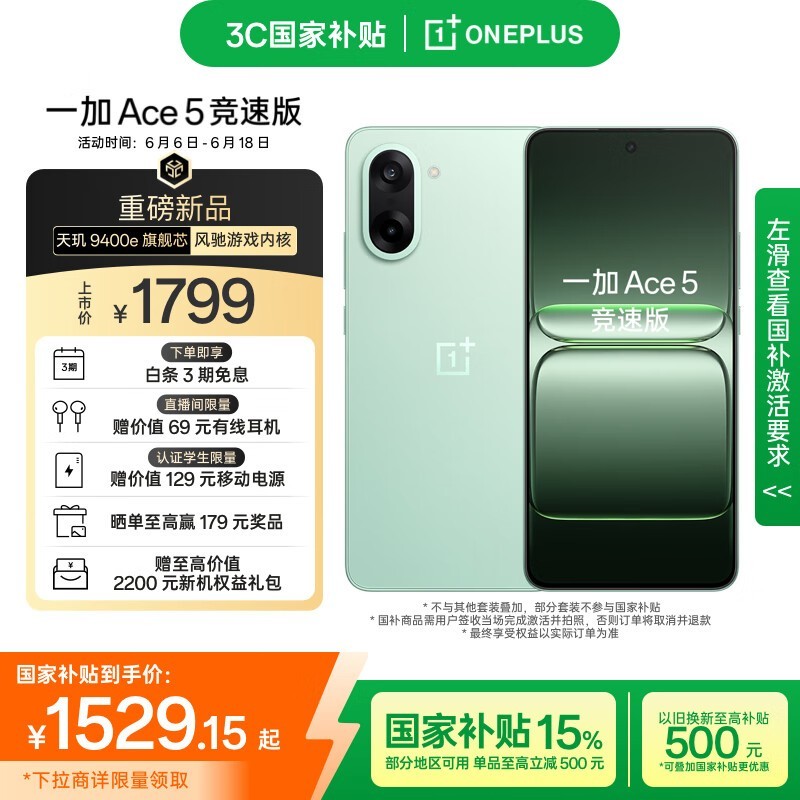 一加OnePlus Ace 5竞速版旷野绿1229元可入手