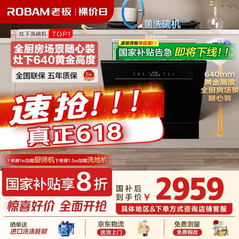 老板嵌入式洗碗机灶下款14套,2359元可入手