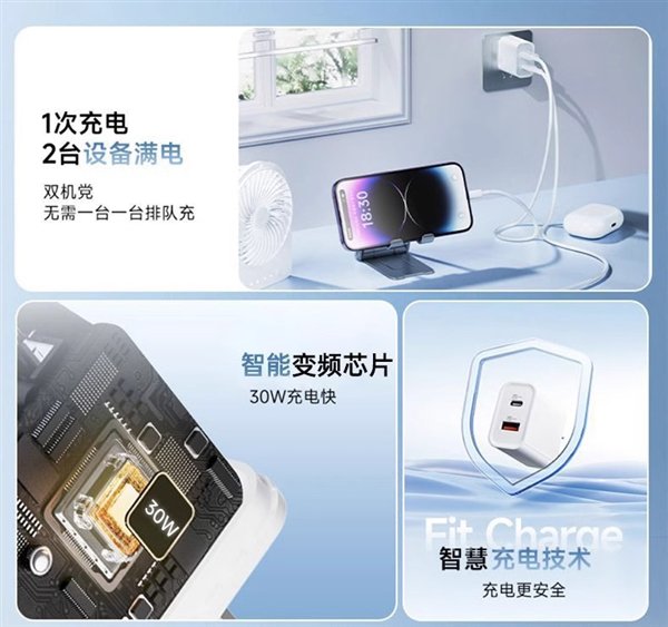 30W 双口快充,坦吉尼氮化镓充电器 + 1 米编织线套装日常售价为 29.88 元,下单领取 10 元优惠券,实付 19.88 元包邮。