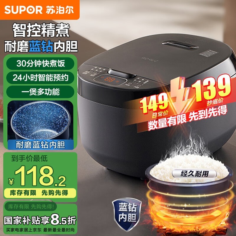 苏泊尔3L迷你电饭煲限时特惠81.72元