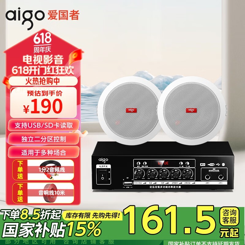 爱国者5.5寸一拖2蓝牙吸顶喇叭特价159元