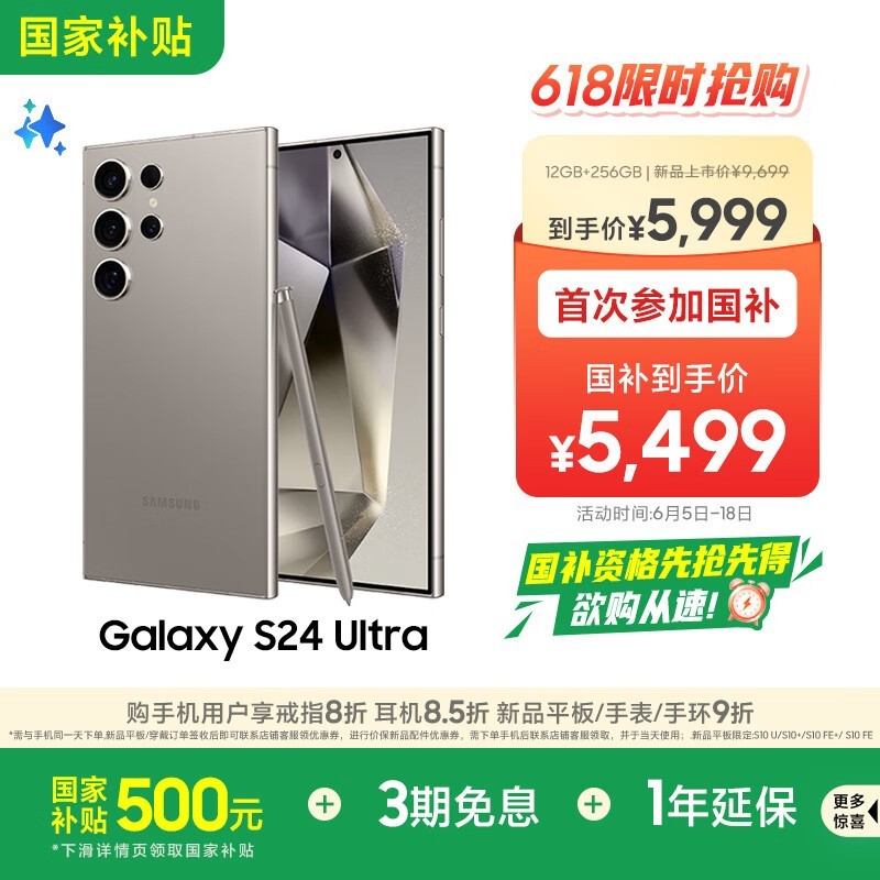 三星Galaxy S24 Ultra 5G手机京东促销低至5468元