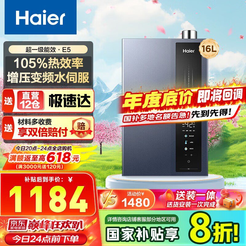 海尔16L燃气热水器,活动价低至944元