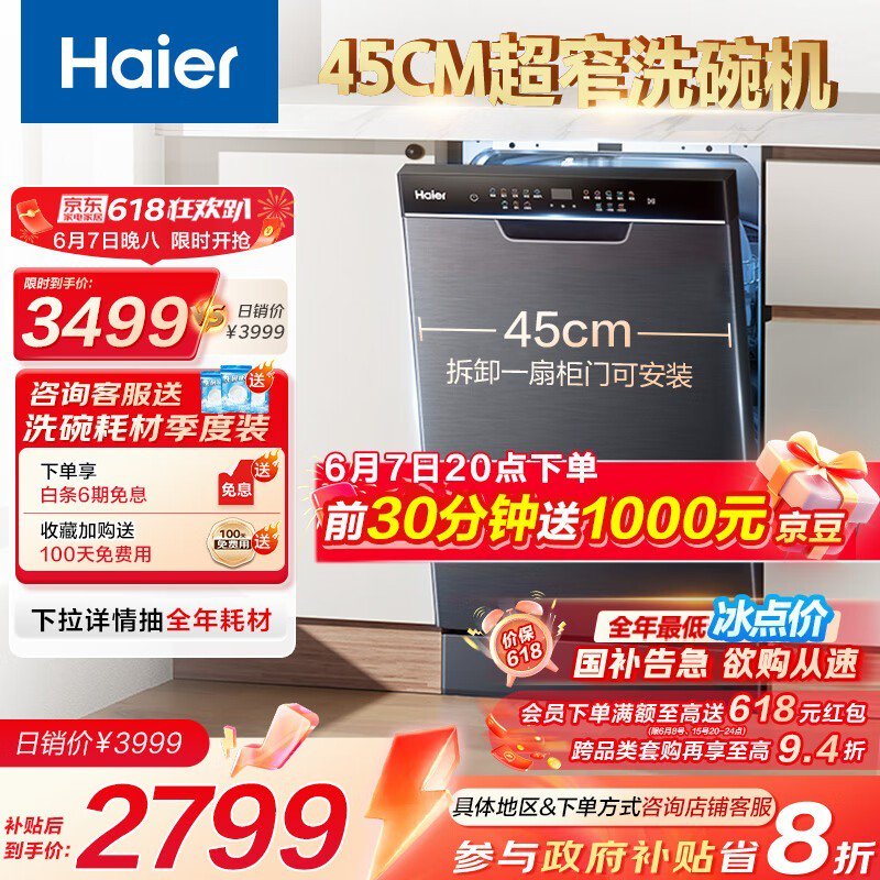 海尔X3000洗碗机7号20点到手价1308元