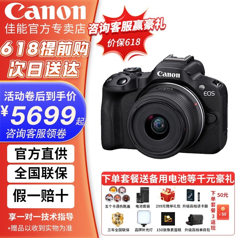 佳能R50微单相机限时特惠,到手价6299元