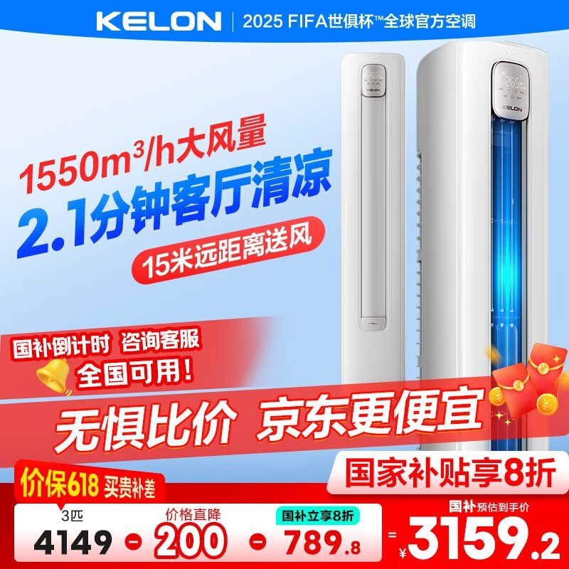 科龙3匹立柜空调京东促销低至3159元