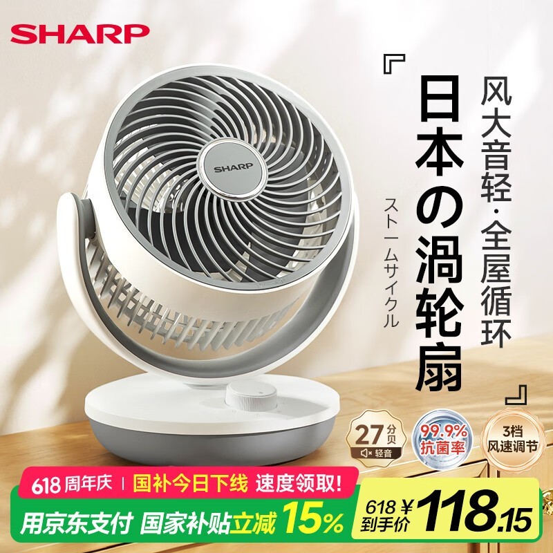 夏普小风铃空气循环扇PJ-CA230B-A静音抑菌台扇京东热销价125元