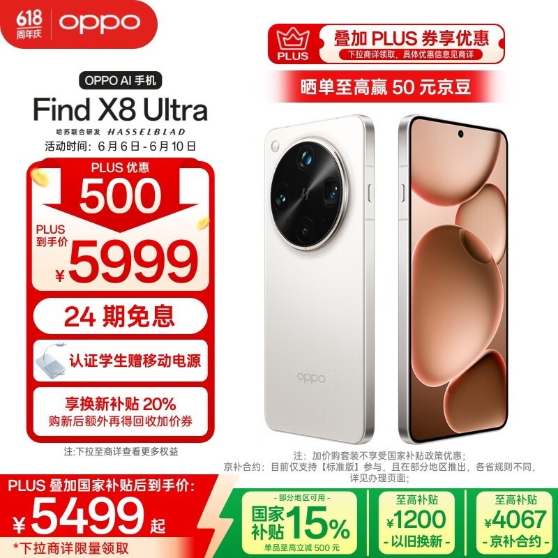 OPPO Find X8 Ultra 5G手机限时特惠,低至5399元