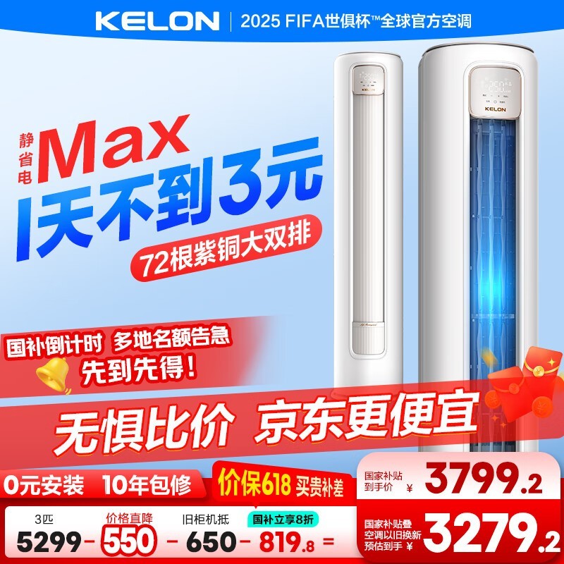 科龙3匹柜机空调,京东优惠后低至2783元