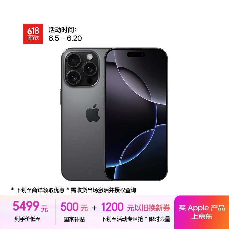 苹果iPhone 16 Pro 128GB黑色京东优惠价5464元