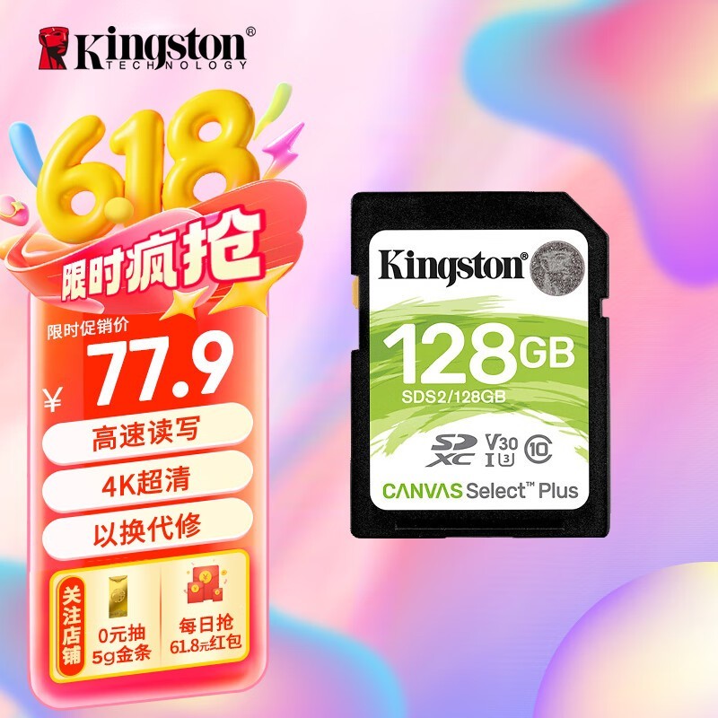 金士顿SDS2 128GB SD卡京东促销低至64.72元