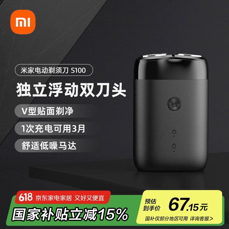 米家MIJIA S100电动剃须刀黑色促销价65.78元