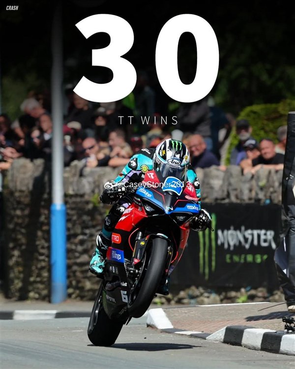 迈克尔·邓禄普驾驶杜卡迪在超级摩托组,以26.181秒的优势击败哈里森,拿下曼岛TT生涯第30个冠军,这也是杜卡迪自1995年以来首次赢得曼岛TT赛事。