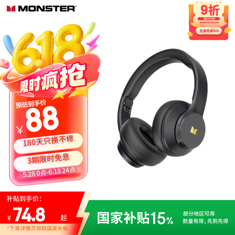 魔声Mission 100头戴式蓝牙耳机低至58.76元