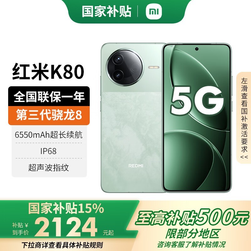 红米K80 5G(12GB+256GB山峦青)京东优惠价1769元