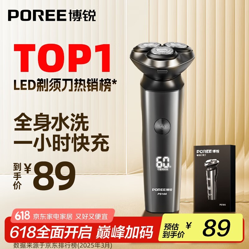 博锐PS166电动剃须刀炫酷黑限时特惠