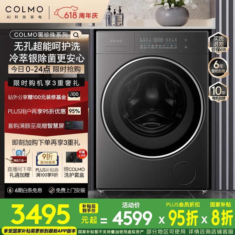 COLMO滚筒洗衣机限时特惠2927元