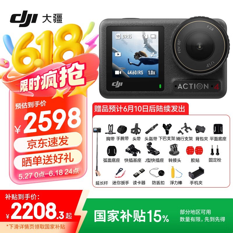 大疆Osmo Action 4全能套装京东优惠价2103元