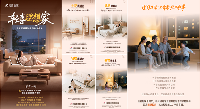 十年积淀,初心不改。轻喜到家宛如一股悄然涌动的暖流,为千万家庭拂去尘埃、排忧解难,在平凡日子里拼凑出幸福图景,成为都市人生活不可或缺的“家务合伙人”。这次618家务狂欢节,轻喜到家摒弃复杂算法,一如既往地升级品质服务体验,以更有性价比的产品满足现代家庭多元需求,为人们打造出理想的生活场景,在护航民生等方面发挥自身的最大价值,让每一位消费者在洁净有序的家居空间找到属于自己的诗意与美好。