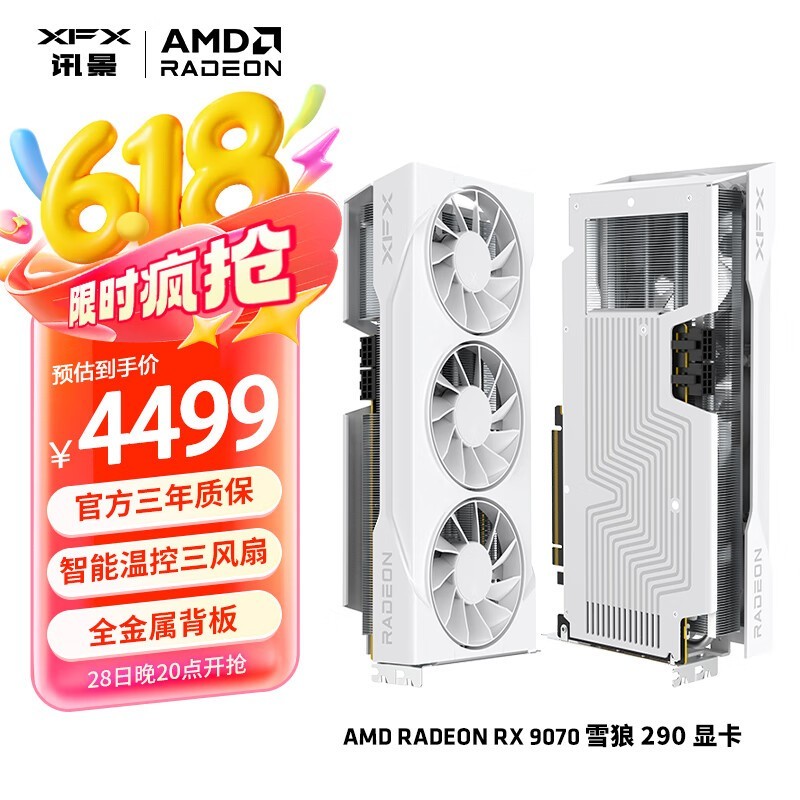 讯景RX 7900 GRE雪狼16G白显卡限时特惠4269元