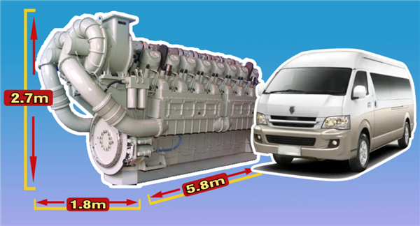 这不仅仅是气缸数的差距,铁路机车柴油机的体积上就大的惊人,长5.8米、宽1.8米、高2.7米,和一辆面包车大小相当。