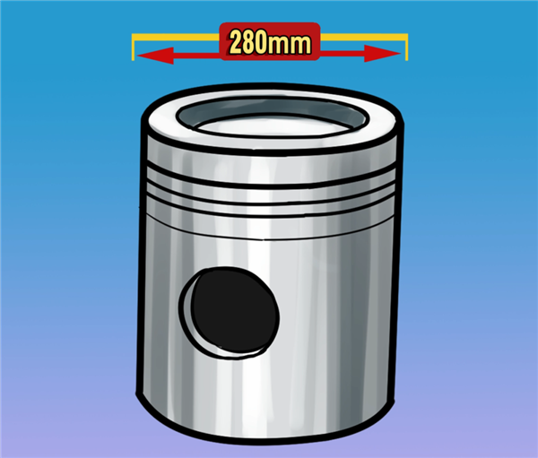 单个活塞直径达到约24-28厘米,拆下来如同一个板凳大小。