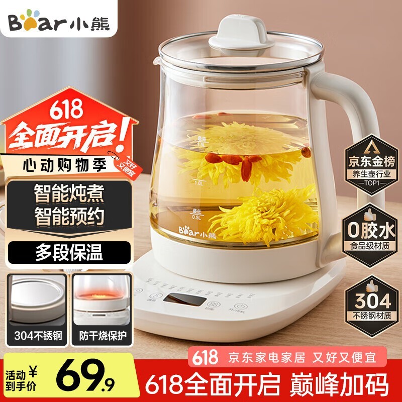小熊养生壶多功能电水壶京东限时特惠价48.14元