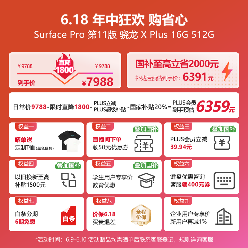 Microsoft Surface Pro第11版限时特惠6390元