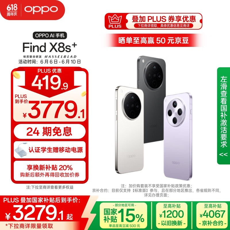 OPPO Find X8s+ 5G手机天玑9400+芯片京东限时特惠