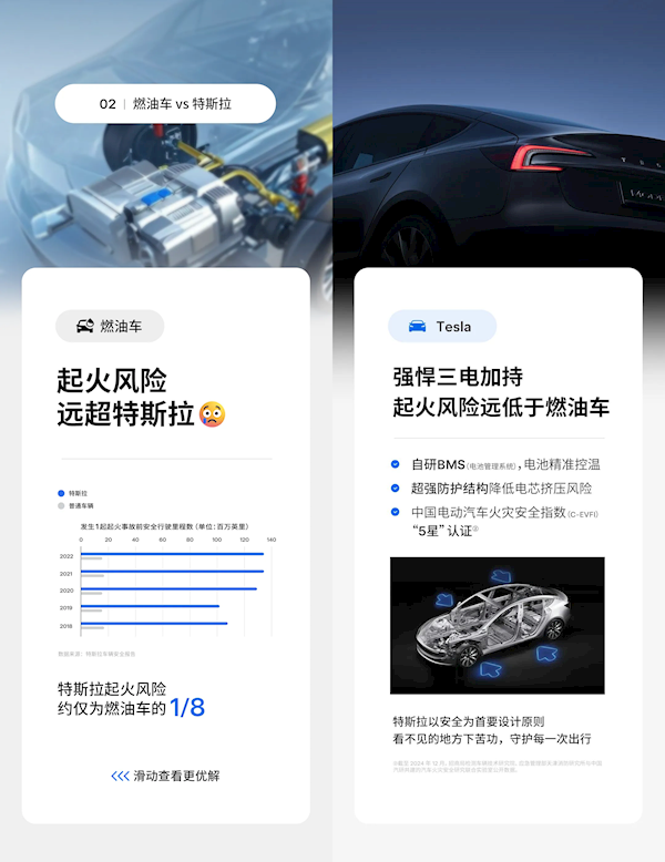 其中就提到了起火风险,特斯拉表示,燃油车的起火风险远超特斯拉,高达约8倍!