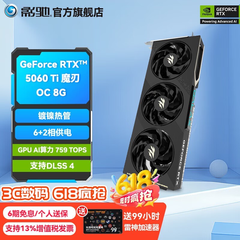 影驰RTX5060Ti魔刃OC8G显卡限时特惠3399元
