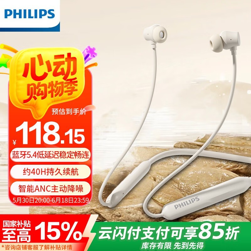 飞利浦TAN2020白色挂脖耳机优惠后103元