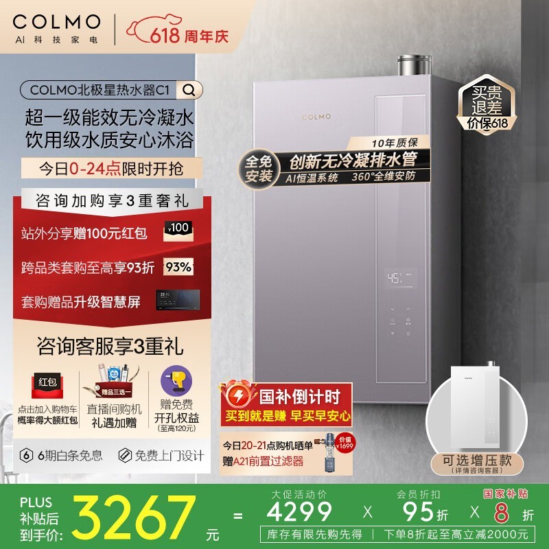 COLMO北极星C1燃气热水器 补贴后低至3095元