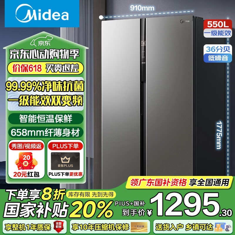 美的BCD - 550WKPZM(E)冰箱京东优惠价1439元