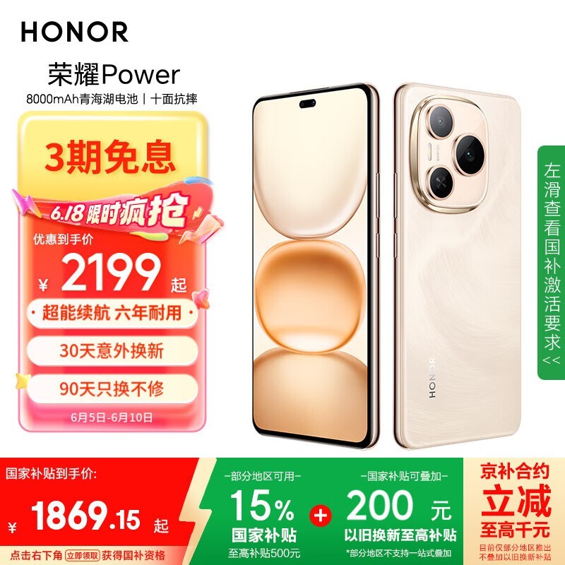 荣耀HONOR Power 5G手机12GB+256GB沙漠金限时特惠