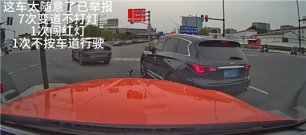 随后车辆开启乱开模式,7次变道不打灯,还有闯红灯行为。博主将行车记录仪的视频,向相关部门进行了举报,结果举报全部被采纳。