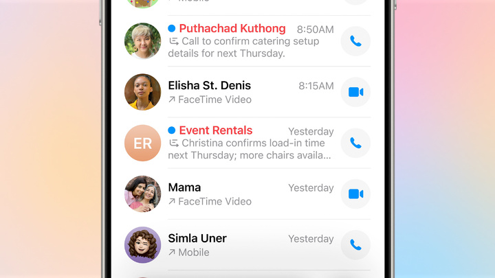 现在,电话 app 中,个人收藏、最近通话列表以及语音信箱会显示在一起,在 Apple Intelligence 的帮助下,重要的内容也会提前显示。