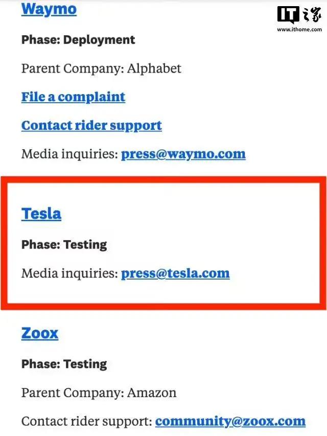 相比之下,Waymo 在奥斯汀推出服务之前,已经在其他城市运营了其无人驾驶系统,并且在奥斯汀进行了为期 6 个月的安全驾驶员测试以及 6 个月的无安全驾驶员测试。而特斯拉此前从未被列入奥斯汀市官方网站的“已知自动驾驶运营商”名单中。