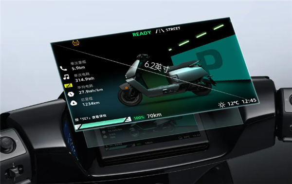 配备6.2英寸全彩TFT仪表,9mm超窄边框,屏占比93%,60Hz刷新率、191ppi像素密度,支持MotoPlay全屏导航、电话、音乐播放等,且有IP66防水等级。