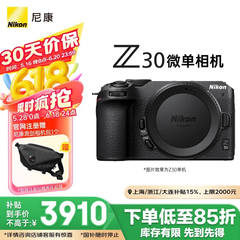 尼康Z30微单套机京东优惠,到手3745元