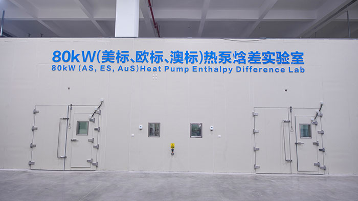 与此同时,2025年3月,太阳雨斥资2亿元建成的行业首座零碳实验大楼在连云港总部基地正式启用。大楼集成了国内首座-60℃超低环温1200kW大容量(200HP)综合性能实验室、热泵行业独有的户用和商用长期运行可靠性实验室、领先国际标准的30kW和80kW热泵焓差实验室群组,以及精密级半消音实验室与极端气候模拟实验室等30个行业一流热泵实验室,形成覆盖-60℃至55℃全温域、全工况的研发测试矩阵;
