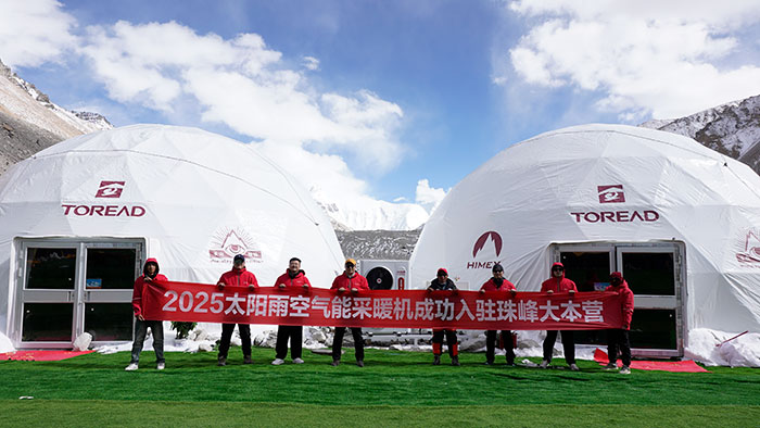 2023-2025年,太阳雨空气能连续三年入驻海拔5200米的珠峰大本营,克服超高海拔、超低含氧、超低环温、超大温差、超强紫外线、超大风力和雨雪多变的极端复杂环境条件,为国内外珠峰攀登者提供稳定的清洁供暖,并且通过了中国电研CVC威凯为期30天的实地运行监测,各项指标优异,不仅开创了行业先例,也创下“世界海拔最高空气能应用项目”纪录。
