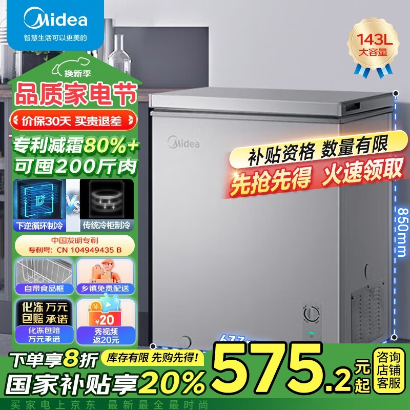 美的143L冷柜一级能效京东特价507元