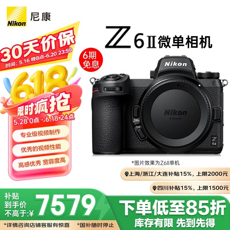 尼康Z6 II全画幅微单相机黑色单机身超值促销