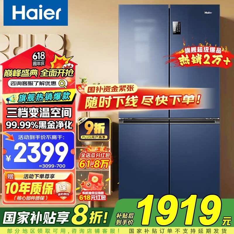 海尔467L十字门冰箱 京东优惠低至2095元