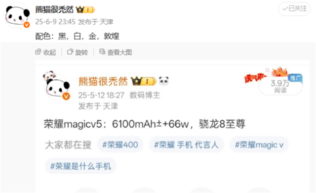 (荣耀Magic V3敦煌配色)在配色策略上,爆料显示Magic V5将延续与中国敦煌文化的结合,继续提供“敦煌”主题配色,同时新增金色选项。而前代颇受欢迎的“苔原绿”配色则可能被取消。随着该产品预计发布时间的临近,关于荣耀Magic V5的更多规格细节或将陆续揭晓。