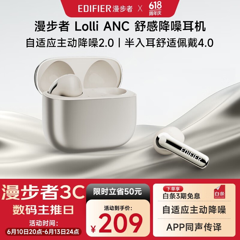 漫步者LolliANC真无线降噪耳机限时特惠154元