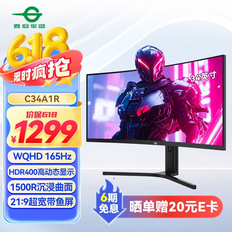 泰坦军团C34A1R电竞带鱼屏,超清165Hz高刷屏