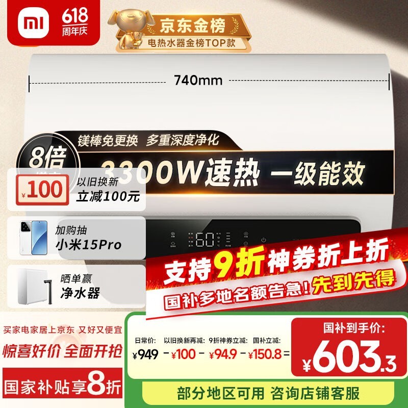 米家MIJIA电热水器优惠价502元可入手